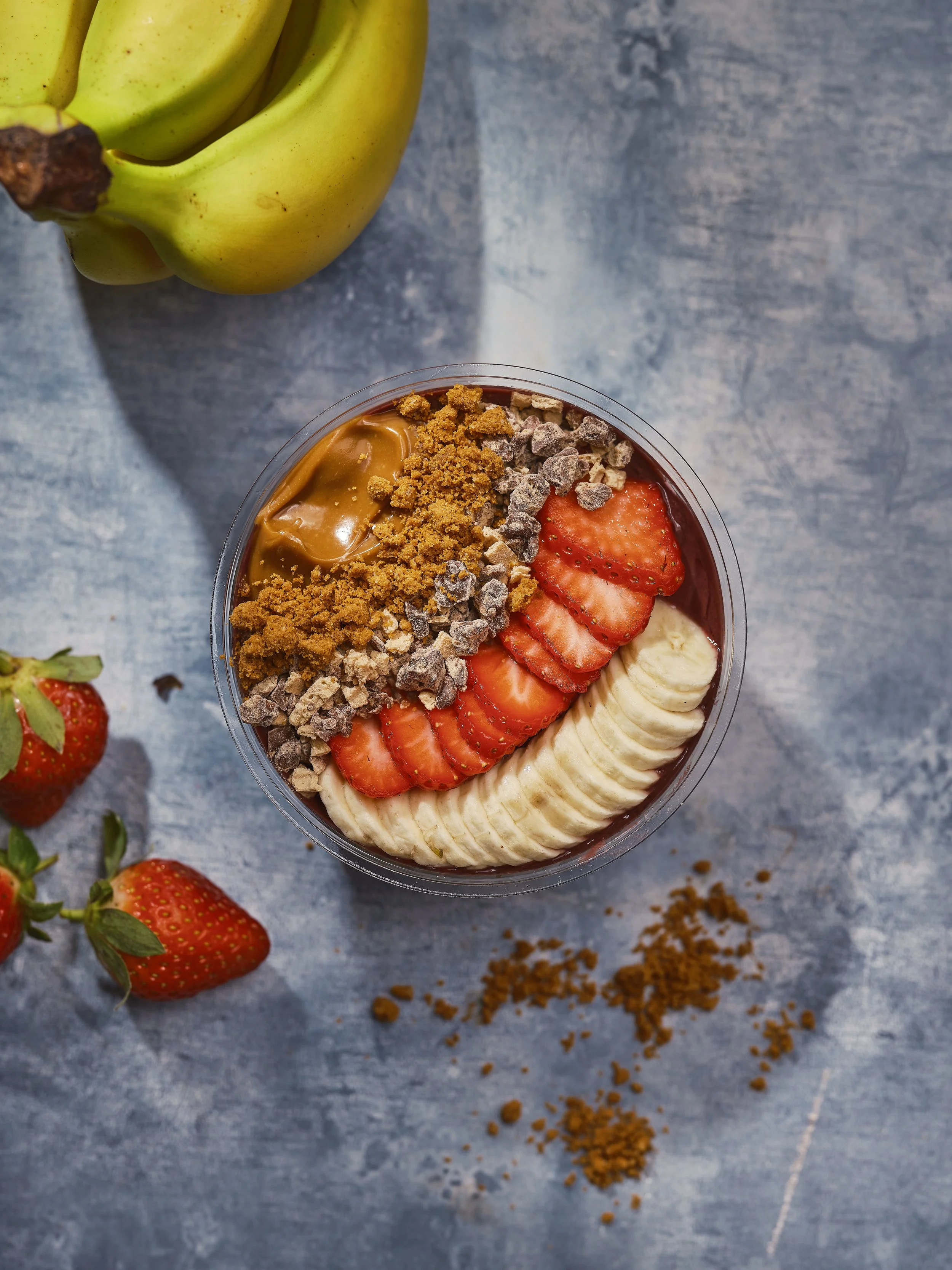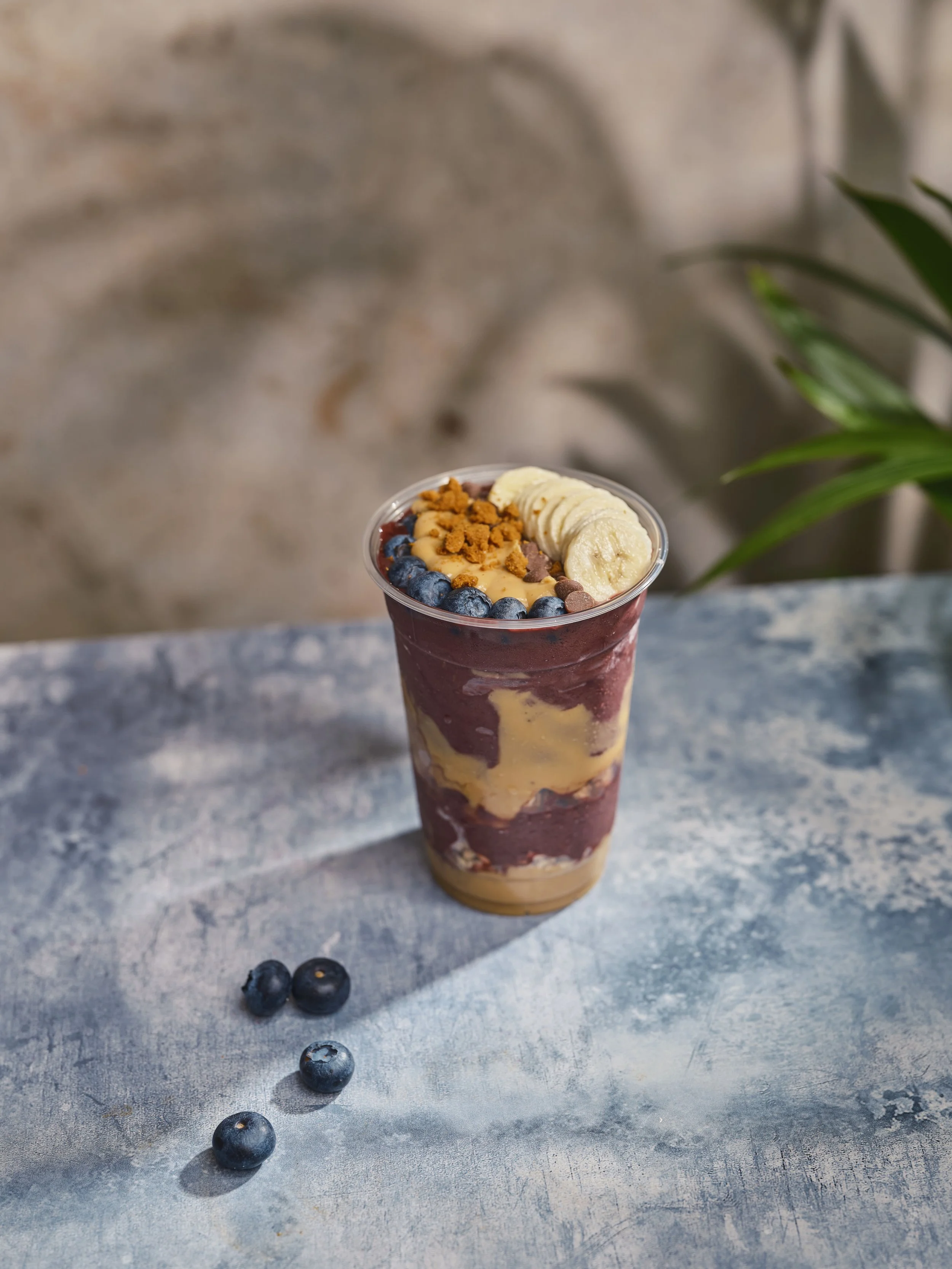 Açaí can be enjoyed in various ways, but Açaí bowls are currently the most popular option. These bowls feature an Açaí base adorned with granola, accompanied by delectable sauces like peanut butter, Biscoff or Nutella, and an array of visually enticing garnishes.